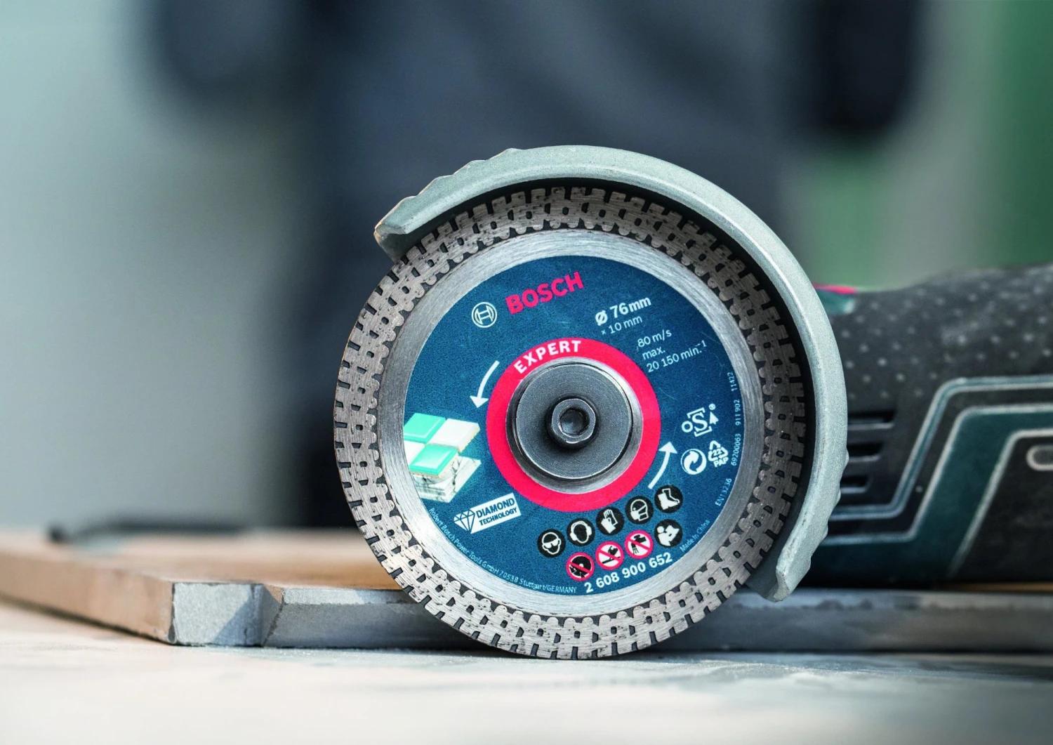 Dankzij de Bosch Diamond Technology, die nieuwe diamanten naar de oppervlakte brengt om ervoor te zorgen dat de rand altijd scherp is, slijpt onze keramische doorslijpschijf zelfs soepel door harde tegels. Het dunne, sterke lichaam en de doorlopende gegroefde rand bieden maximale controle en houden de trillingen laag voor een hoogwaardige, splintervrije zaagsnede.