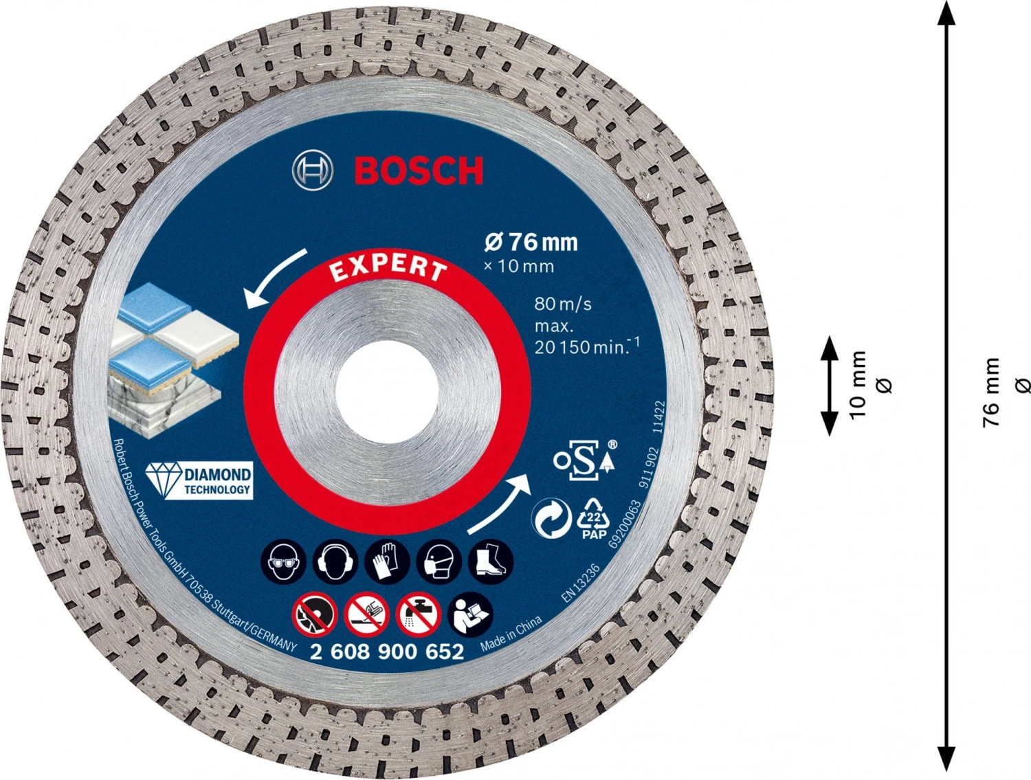 De Bosch Expert HardCeramic 76 mm diamantdoorslijpschijf voor tegels biedt de beste zaagsnede in harde tegels. Met deze diamantdoorslijpschijf kun je er zeker van zijn dat je bij elke klus een professionele afwerking krijgt.