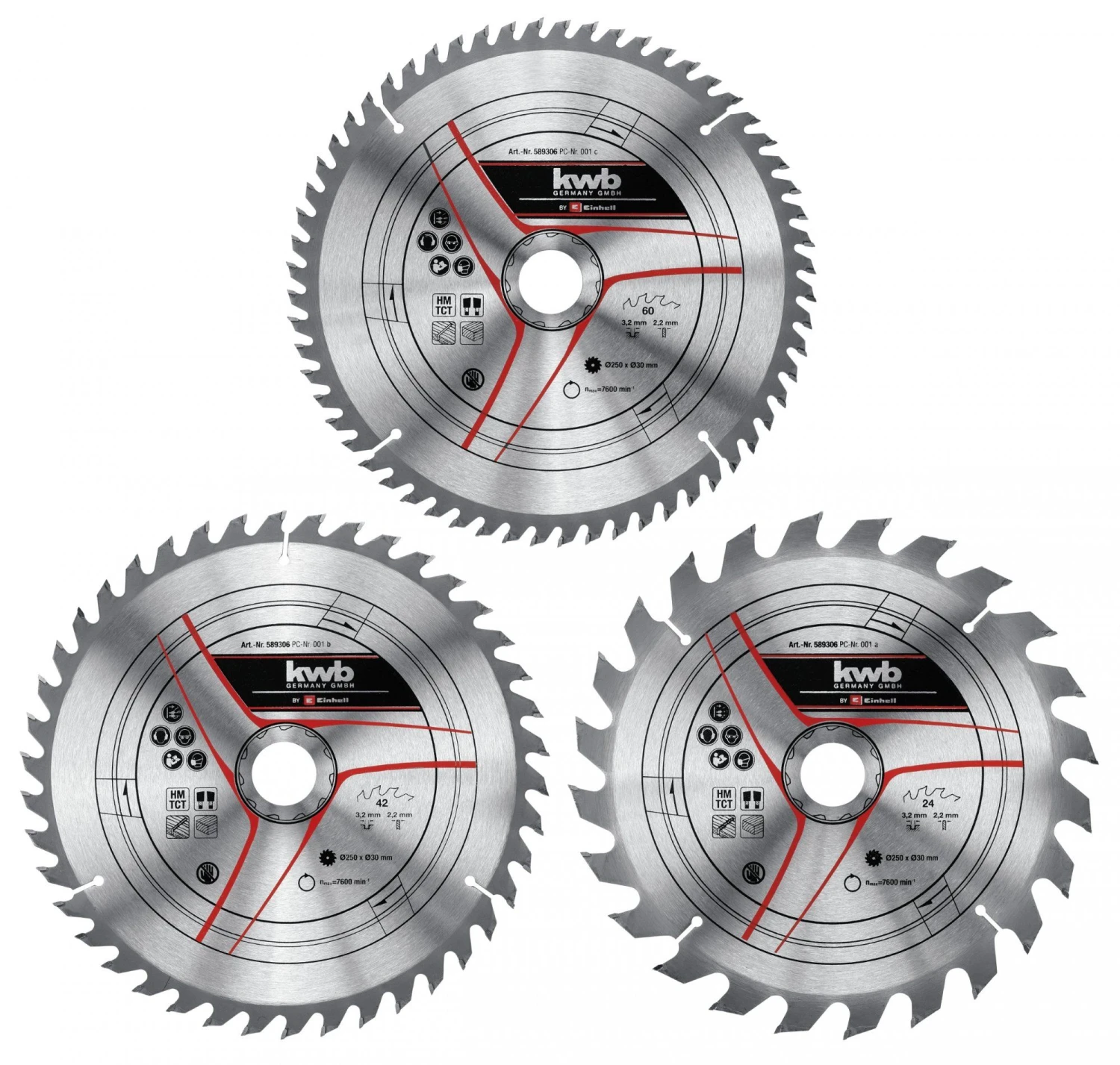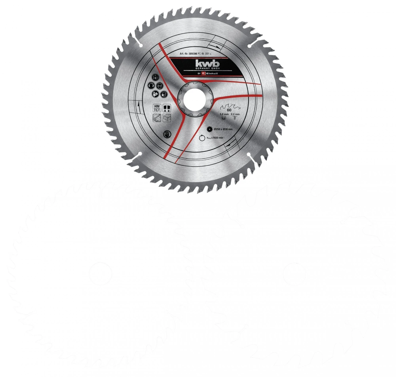Afmetingen zaagbladen: Ø250xØ30×2,2 mm / 24, 48, 60 T
