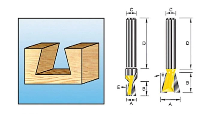 Hardmetalen zwaluwstaartfrees. Geschikt voor het frezen van nauwkeurige open, halfopen en gesloten verbindingen in massief hout en lijmhoudende houtsoorten.
